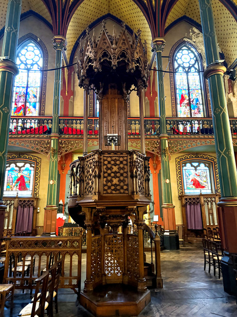 But enter the church and you'll be struck by the beautiful stained glass and spacious interior.