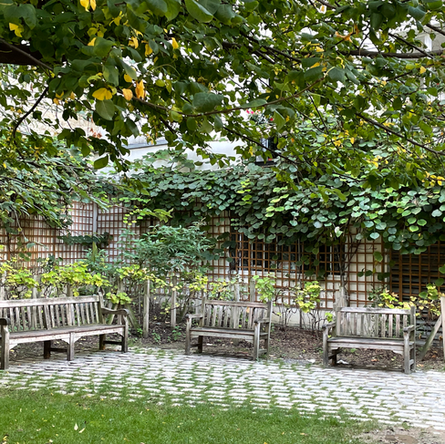 Keep walking along this colorful street and you'll find an alleyway on your left. This will lead you to the Jardin des Rosiers Joseph Migneret. Of the many parks and gardens in the Marais, this is one of my favorites. Joseph Migneret was a teacher in a nearby boys' school during World War II. He was instrumental in saving many children from the area but of course many could not be saved. There is a plaque as you enter the garden with the names and ages of the children who were lost to the Nazis, some of whom were just days old. Spend a few minutes in this lovely, quiet oasis.