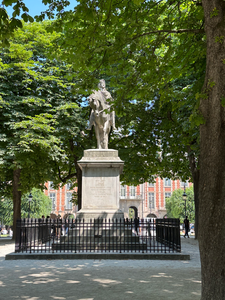 The statue is Henri IV who created the Place Dauphine as well as many other landmarks in Paris including the Place des Vosges where you'll go tomorrow.